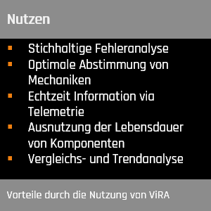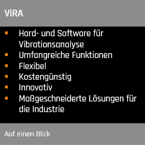 ViRA (Vibration Reporting & Analysis) ist die Lösung um komplexe Baugruppen auf Vibrationen hin zu untersuchen und dadurch die Identifikation der Verursacher zu ermöglichen (z.B. Kugellager, Motorglocken, Wellen).